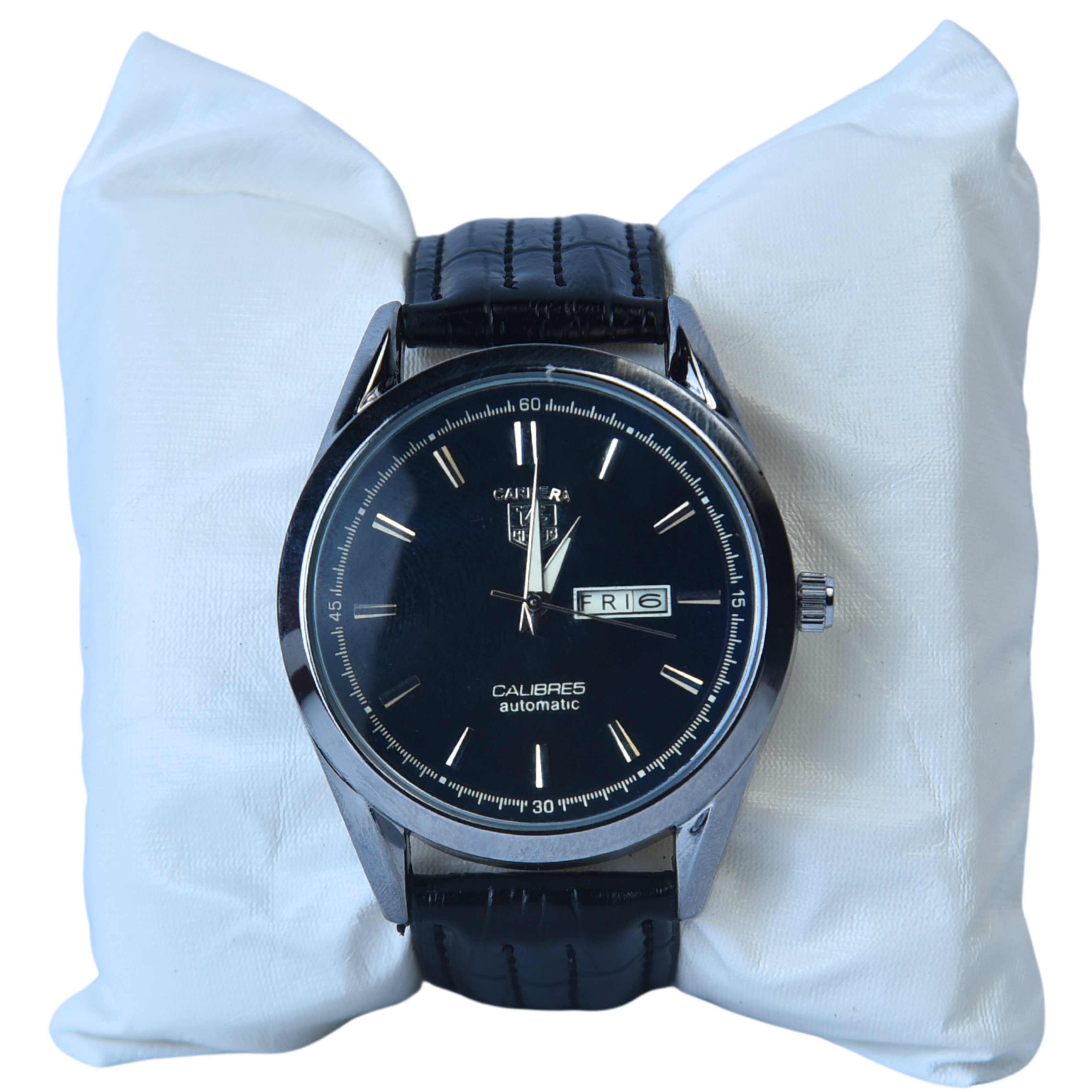 Premium quality analog wristwatch with black striped belt-style strap, elegant blue dial, and sleek silver case. Stylish, durable, and perfect for everyday wear.