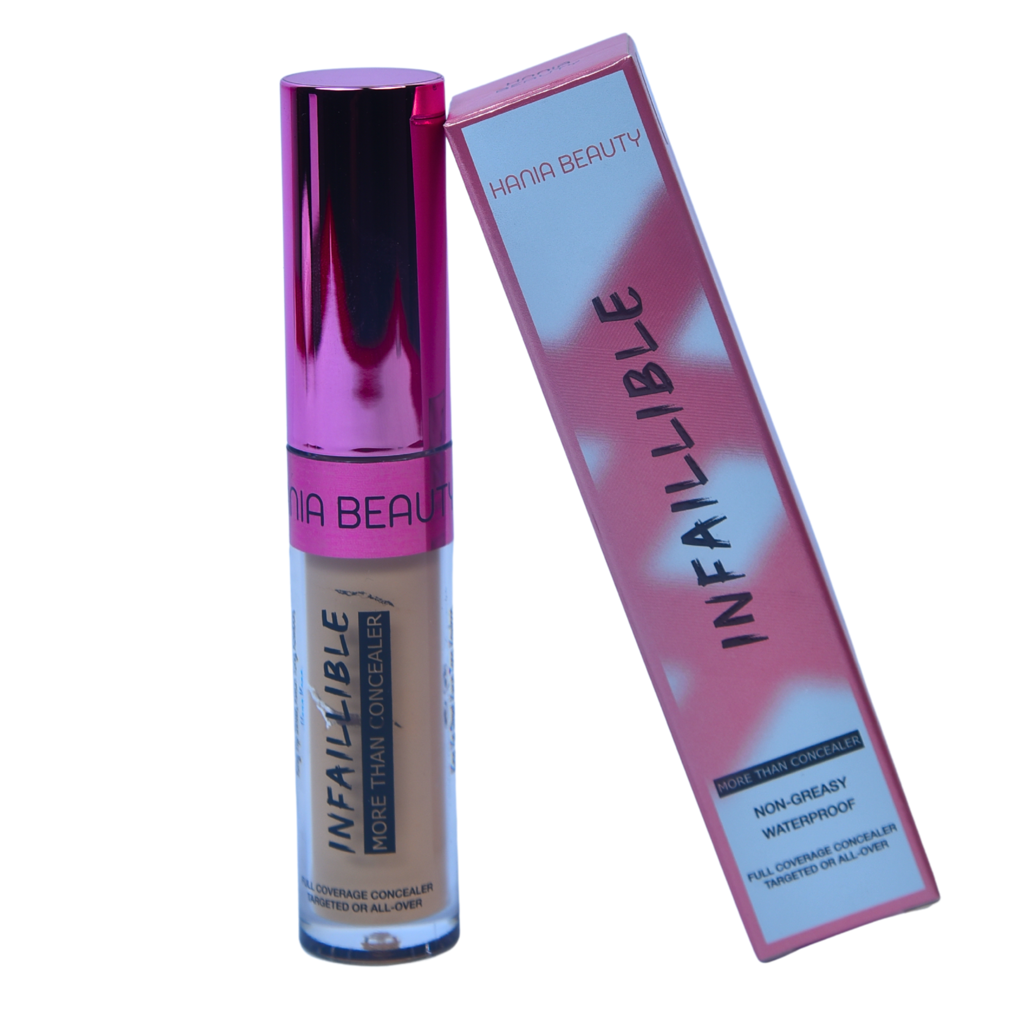 Hania Beauty Infallible Concealer is a high-coverage liquid concealer designed to instantly hide dark circles, blemishes, and imperfections. Its smooth, lightweight formula blends effortlessly into the skin, giving a natural, flawless finish without creasing. The long-lasting wear keeps your makeup fresh all day, while the precision applicator ensures easy and targeted application. Perfect for under-eyes, spots, and touch-ups, this concealer delivers a confident, airbrushed look every time.