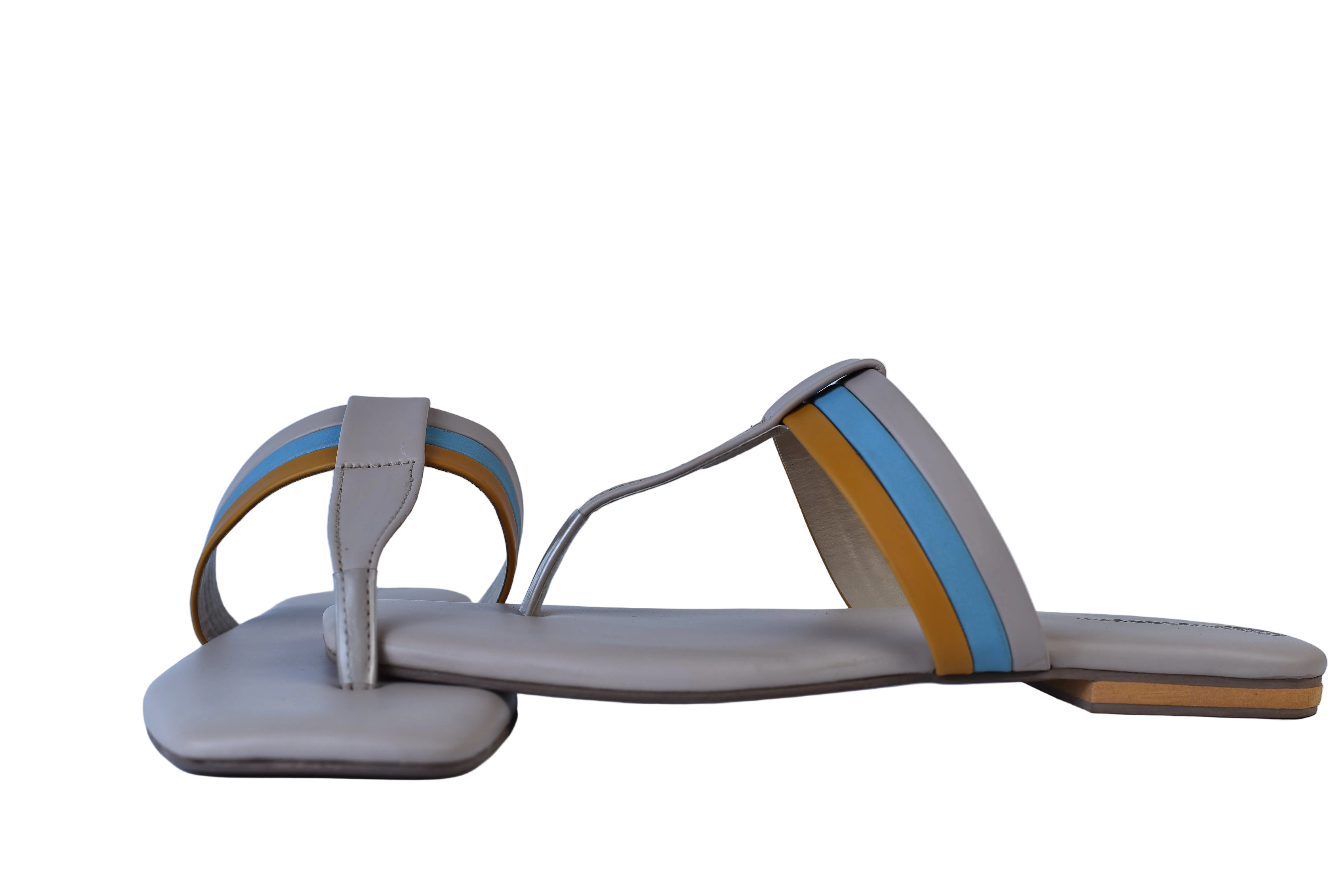 1. Color: The sandal is fawn with blue and light brown accent stripes on the straps (the main body is fawn color , with blue and light brown decorative bands).